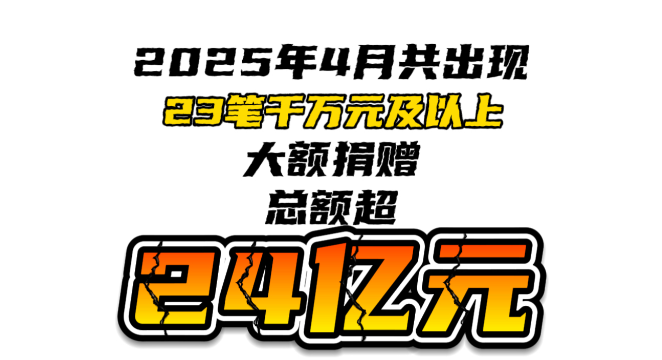 2025年4月大額捐贈一覽:千萬元及以上捐贈總額超24億元,教育領(lǐng)域是主要去向
