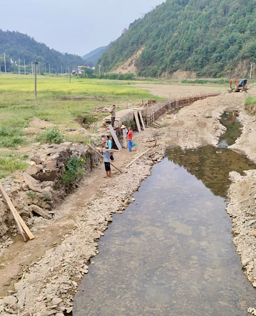 村民們頂著烈日連續(xù)施工,用辛勤的汗水確保生產(chǎn)生活能盡快重回正軌