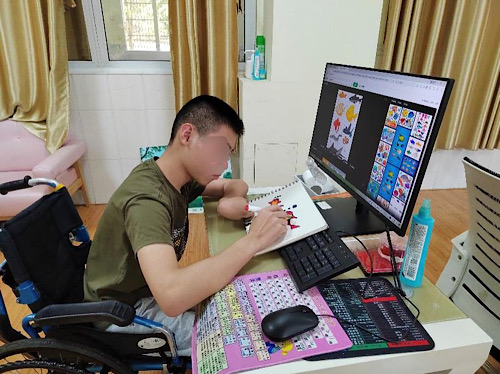 “長大后,我想成為一名畫家,把夢里五彩斑斕的世界呈現(xiàn)在畫里。”廣西壯族自治區(qū)玉林市兒童福利院里,16 歲的小付坐在嶄新的課桌和電腦前,一筆一劃地勾勒著手中的畫作,臉上滿是認真和專注,眼里盡是對未來的憧憬。小付是一名痙攣型腦癱兒童,對肌肉的控制較常人更為困難,他對畫畫充滿著熱情,他的畫里有著巧妙的構思和獨到的色彩見解。