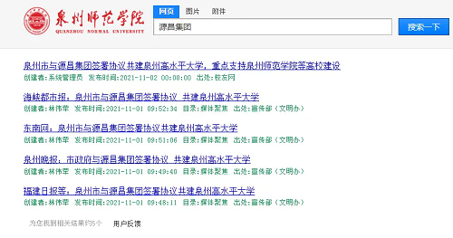 泉州師范學院官網(wǎng)搜索截圖那么,關(guān)于協(xié)議中提到的支持泉州師范學院等建設(shè)進展如何?記者通過源昌集團、泉州師范學院以及南安市慈善總會等機構(gòu)官網(wǎng)搜索,均未發(fā)現(xiàn)相關(guān)消息或進展。