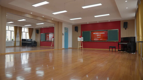 而新落成的“藝術普及教室”中,教學一體機、音響、鋼琴、把桿等先進硬件設施一應俱全,師生們還可以通過線上課堂來獲取更多的教材和音視頻。