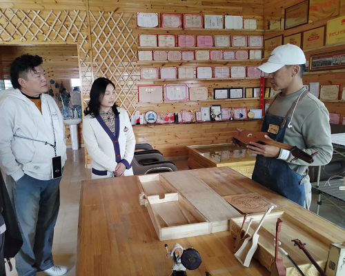 國家大劇院團隊走訪托布秀爾琴傳承基地在結合地域性文化需求方面,“藝術普及教室”的捐建地均帶有濃郁的民族特色,群眾對藝術種類的接受上存在明顯偏好。因此,國家大劇院與地方民族藝術團體精心配合,為當?shù)匕傩辗瞰I高雅藝術與地方民族藝術深度結合的舞臺表演,并在每一站特別與當?shù)氐?ldquo;非遺”民族藝術家深入互動,重視并協(xié)助維護當?shù)貎?yōu)質特色文化的傳承。