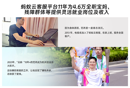 最新的報告顯示,商業(yè)價值與社會價值一體創(chuàng)造的可持續(xù)發(fā)展理念如水,正在流向螞蟻發(fā)展的更深處,帶來一些改變。螞蟻云客服平臺在11年前建立,原來只是為了解決支付寶客服不足的問題。上線之后,螞蟻很快發(fā)現(xiàn)這種打破時間和地域限制的靈活就業(yè)機(jī)會,非常適合全職寶媽、小鎮(zhèn)青年、殘障群體等。通過推出一系列助力這些群體就業(yè)的政策扶持,目前已累計為4.6萬人提供了可以兼顧家庭的靈活就業(yè)崗位并創(chuàng)造收入,其中70%受益者是鄉(xiāng)村媽媽,在家門口照顧孩子的同時更好成就自己,4%是殘障人士,通過工作收獲了生活的信心。